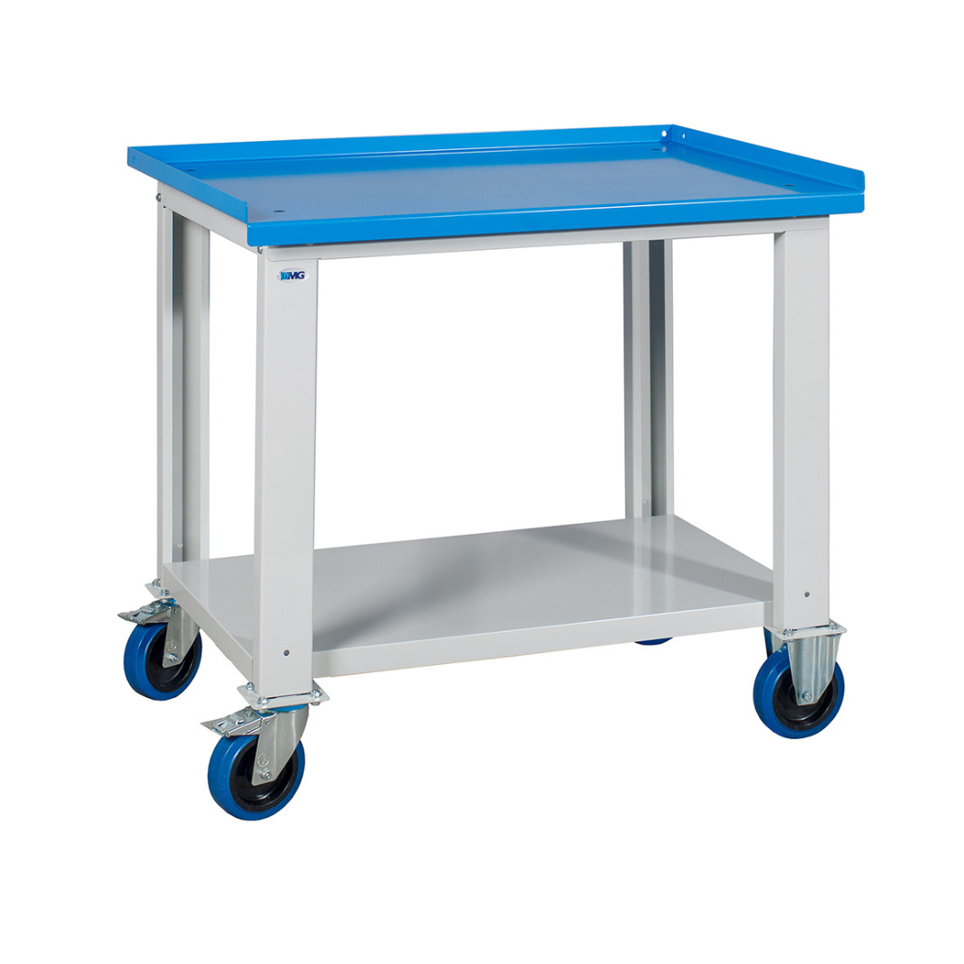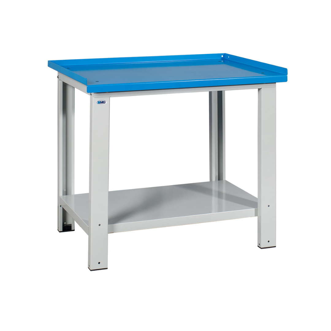 - Material și finisaj: Blatul este realizat integral din tablă de oțel de 3 mm, oferind o rezistență superioară la impact, zgârieturi și contactul cu solvenți sau uleiuri. Este finisat în culoarea Albastru RAL 5015.