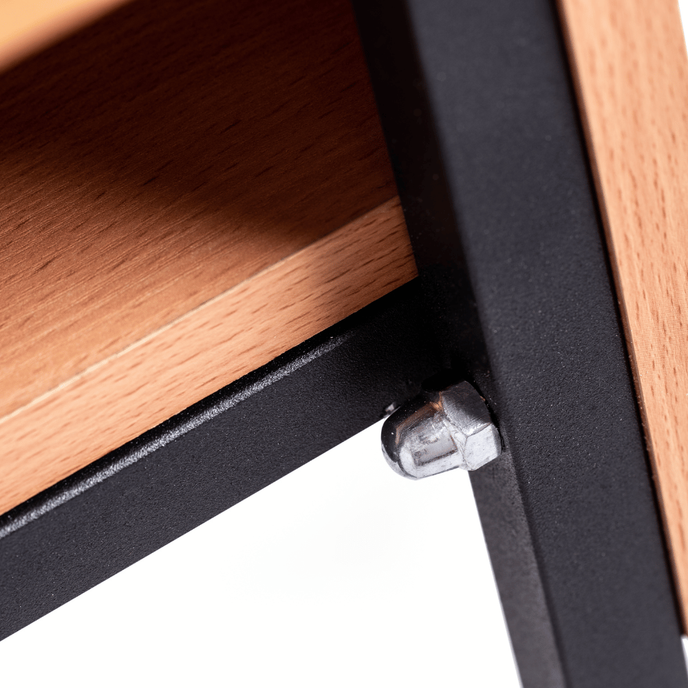 - Blat din PAL melaminat: Suprafața de lucru este fabricată din PAL melaminat, un material recunoscut pentru rezistența sa la uzură și ușurința în curățare.