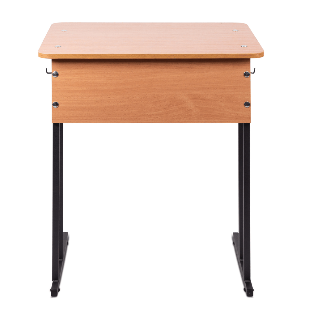 - Organizare integrată: Pupitrul este dotat standard cu un sertar pentru depozitarea rechizitelor și o agățătoare laterală practică pentru ghiozdan sau geantă, contribuind la menținerea ordinii în spațiul de lucru.