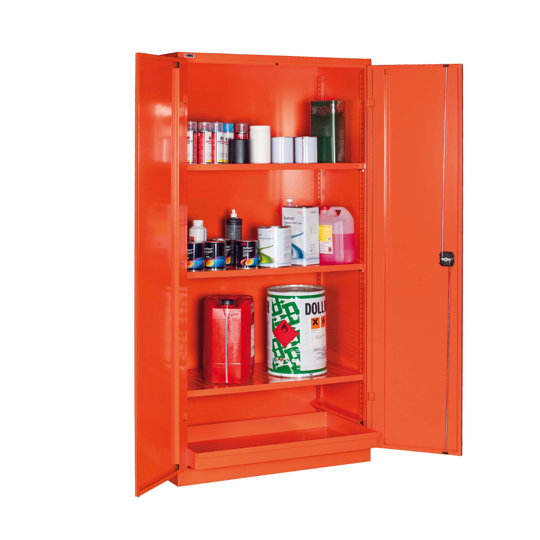- Culoare de siguranță: Portocaliu (culoare standardizată pentru identificarea rapidă a dulapurilor pentru substanțe inflamabile).