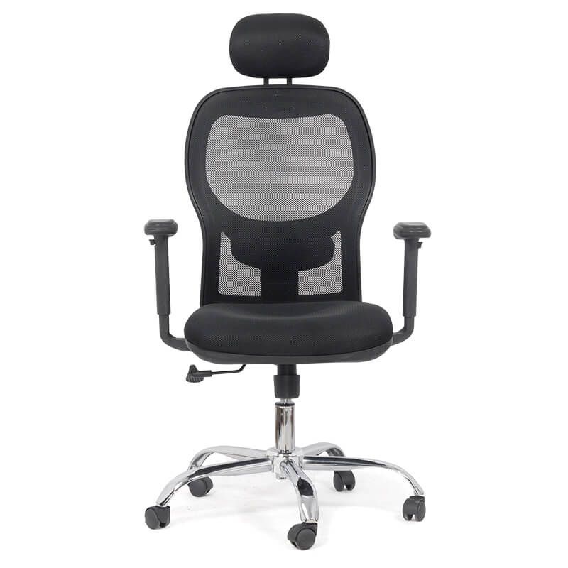 - Suport ergonomic și ventilație optimă: Spătarul și șezutul, tapițate cu mesh, asigură o circulație excelentă a aerului, prevenind disconfortul. Această plasă se adaptează automat pe spatele utilizatorului, iar suportul lombar reglabil în adâncime contribuie la o postură corectă. Tetiera fixă, tapițată cu mesh, adaugă un plus de confort.
