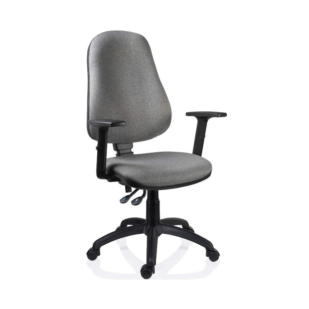 - Opțiuni de confort personalizat: Scaunul poate fi dotat, opțional, cu brațe reglabile pe înălțime cu structură din oțel, tapițate cu poliuretan. Pentru o flexibilitate și mai mare, alegeți brațele 3D, care se reglează pe adâncime și au funcție de rotație.