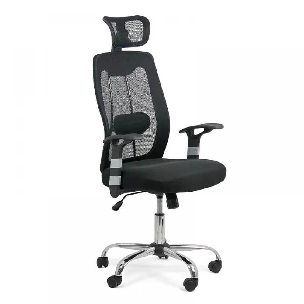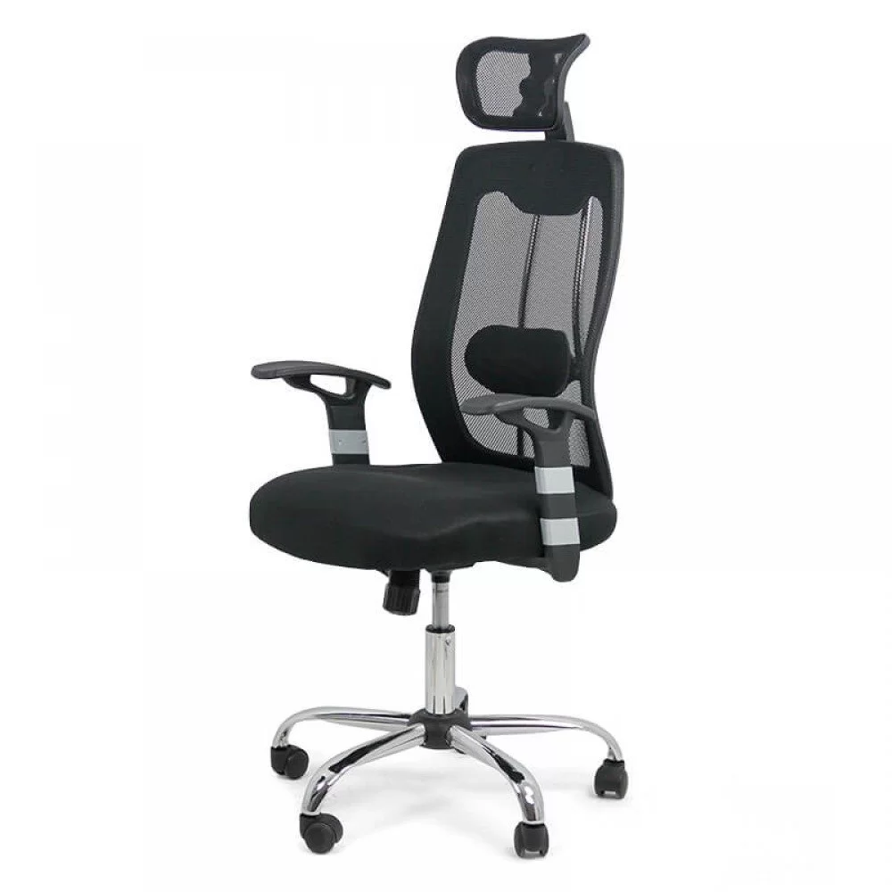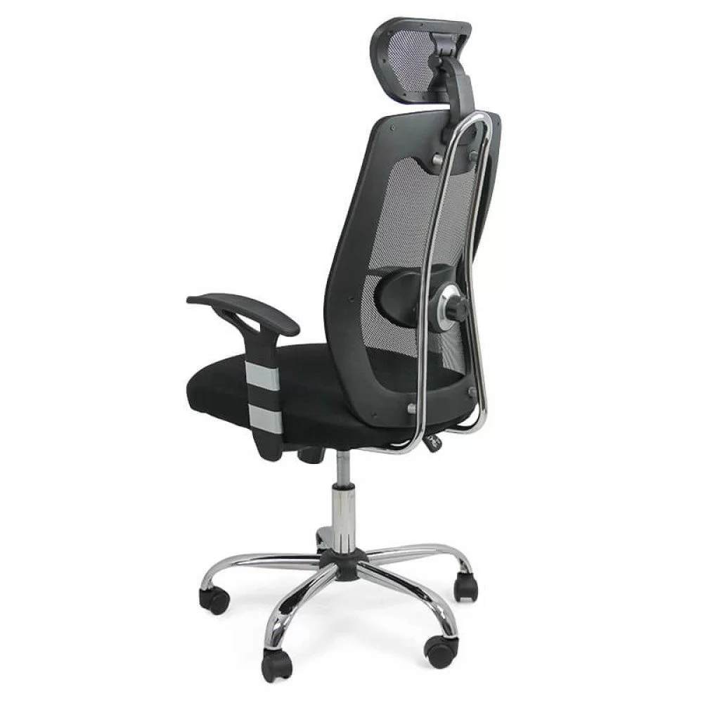 - Suport ergonomic și ventilație optimă: Spătarul și șezutul, tapițate cu mesh, asigură o circulație excelentă a aerului, menținând pielea aerisită. Această plasă se adaptează automat pe spatele utilizatorului, iar suportul lombar reglabil în adâncime contribuie la o postură corectă. Tetiera fixă, tapițată cu mesh, adaugă un plus de confort.
