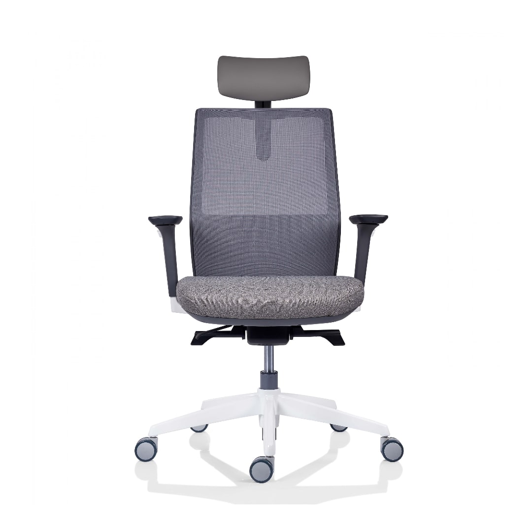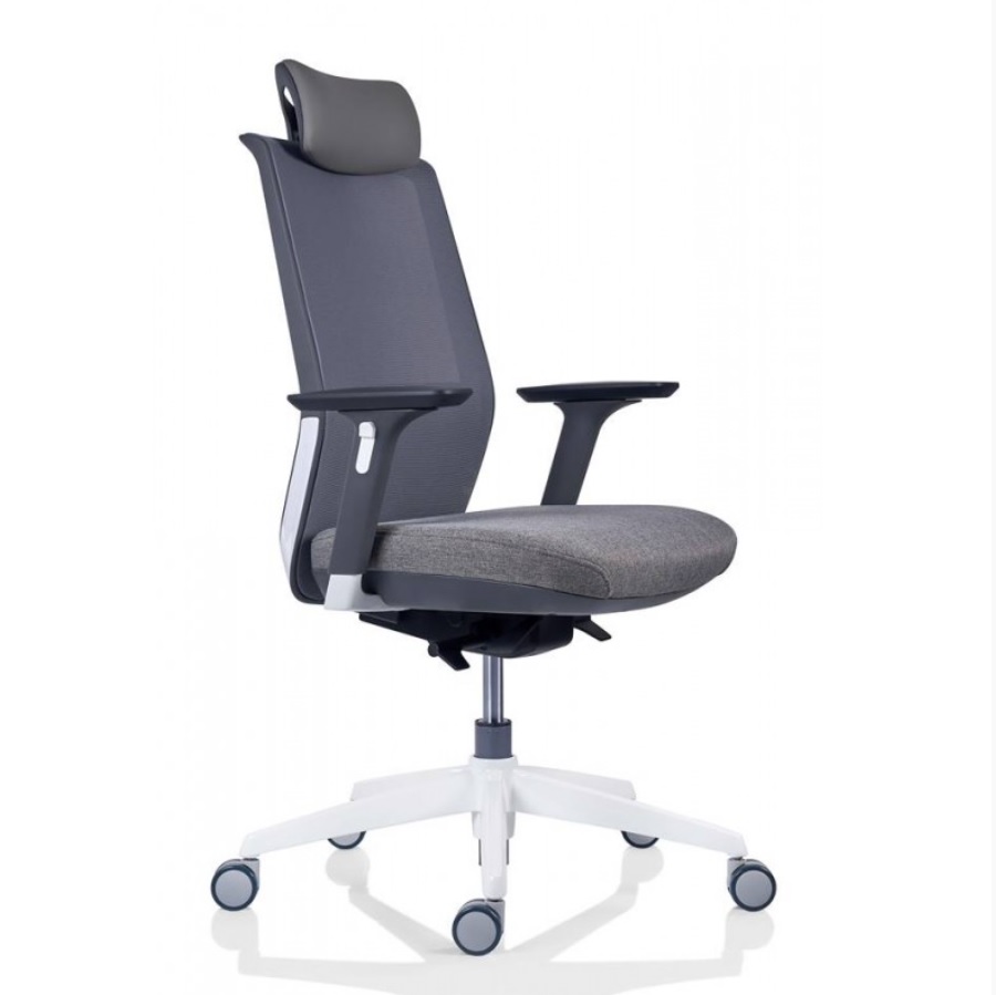 Scaun Tesla 30.12.62, sezut tapitat, spatar mesh, brate 3D, suport lombar