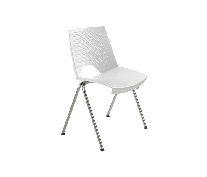 - Design modern și durabil: Carcasa monobloc din polipropilenă este rezistentă la zgârieturi, iar spatele perforat adaugă o notă modernă. Scaunul este disponibil în multiple variante de culori și poate fi tapițat opțional. Cadrul din oțel cromat completează aspectul rafinat și asigură stabilitate.